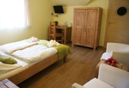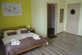 Pokój z dużym małżeńskim łóżkiem i rozkładaną sofą